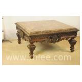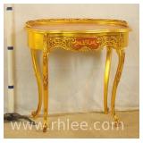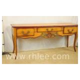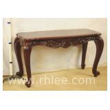 Carved cherry French style console table with banded top; 68-896 - carved on all sides - 53x22x29.5