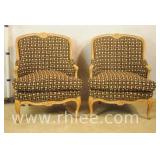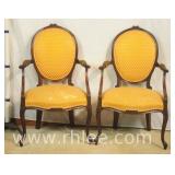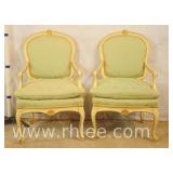 Pair of French style open arm chair with white and gold frames; 68-938 - 25x25x37
