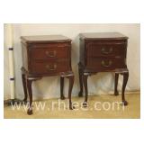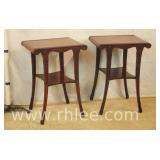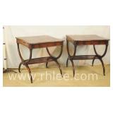Carved mahogany 2 tier side tables with rolled edge leather tops; 68-988 - carved on all sides - 19x16.5x27