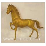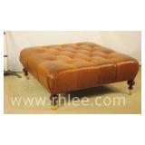 Large brass fire fender/bench with tufted leather seating; 620-247 - (leather finish as-is; leather loose on 1 corner seam) - 85x24x20