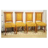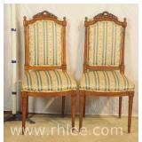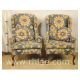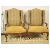 Pair of fireside chairs with carved linen fold frames; 68-953 - (fabric is stained) - 26x23x38