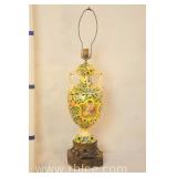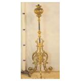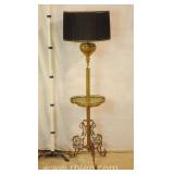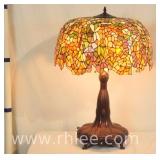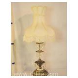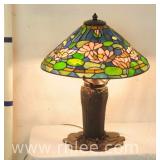 Large ornate metal and glass lamp with shade; 802-107 - 18x18x39