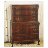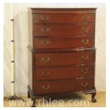 Mt. Airy French style chest on chest with fitted interior; 68-882 - serpentine front lower drawers - 40x21x62