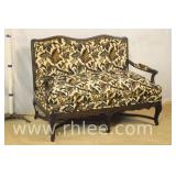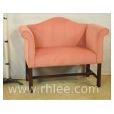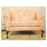 Queen Anne style loveseat with red and white toile fabric; 620-241 - (dirty on arms) - 54x32.5x34