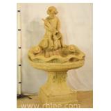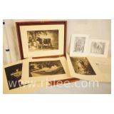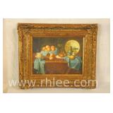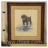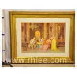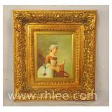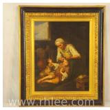 Print on canvas in ornate gold frame; 803-109 - Woman, child and dog scene - 20x23.5