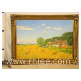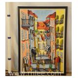 Framed cityscape painting on canvas; 803-111 - 27.5x39