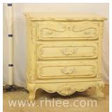 Distressed French style 3 drawer bachelor's chest; 68-923 - raised panel sides - 34x16.5x31