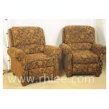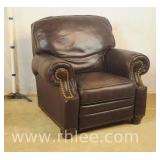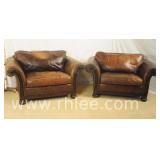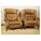 Pair of Lane brown leather oversized arm chair/recliners; 737-836 - ball in claw feet - (footrests on recliners are broken) - 40x38.5x42