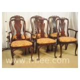 Set of 6 Drexel light finish Queen Anne style dining chairs; 74-2689 - 2 arm chairs, 4 side chairs - 22x23x43 arm chair; 21x22.5x42 side chair