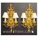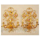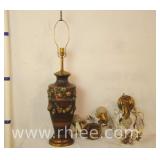 Group of 2 wall sconces and ornate lamp; 68-947,935,934 - floral design on sconces - 8x8x37 lamp; 12x6x10 two light sconce; 10x10x16 single light sconce |