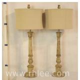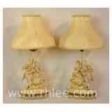 Pair of porcelain figurine lamps with shades; 802-105 - (1 shade as-is) - 13x13x25