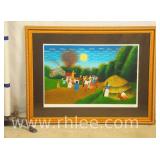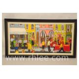Framed street scene painting on canvas; 803-112 - 27.5x15