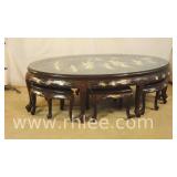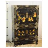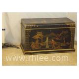 Decorated black Oriental style coffee table; 68-881 - 51x19x16.5