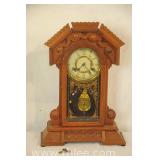 Large grandfather clock with painted case pine case; 620-242 - single door with storage - could fit 2 or 3 long guns - battery operated - 20.5x12.5x91.5