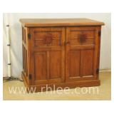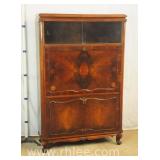 Early 2 door chest with fitted interior; 620-244 - panel doors and sides - 8 interior drawers (mismatched pulls) - 45x28x38.5