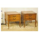 3 piece maple table set with formica tops; 293-564 - Pair of 2 tier end tables and matching coffee table - turned legs - 48x20x14.5 coffee table; 19x28x20 end table