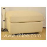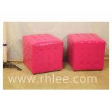 Pair of pink tufted vinyl cube ottomans/benches; 737-835 - 15.5x15.5x15.5
