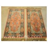 Pair of small Oriental rugs with pink fields; 795-131 - (some stains) - 2.2x3.2 and 2.1x3.1