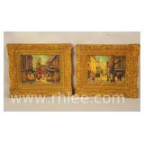 Pair of small oil paintings in ornate frames; 803-114 - street scenes - 1 on board and 1 on canvas - (cracks and chips in frames) - 15x13
