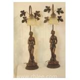 Pair of single light bronze figurine lamps; 802-102 - 8x8.5x25.5