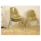 Set of 4 Herman Miller stacking tub chairs; 620-243 - fiberglass with metal bases - side hooks to lock together in line - 23x20x31.5