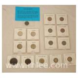 Group of 16 early US coins; 150-AZ - Large cent 1818 - Two Cent piece 1864 - Shield Nickel 1867 - Barber Dime 1913 - Mercury Dime 1943 - Indian Head cent 1864 - Civil War era - 4 V-Nickels 1902,1904,1908,1912 - 6 Indian Head pennies 1881-1906
