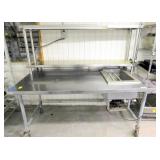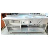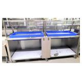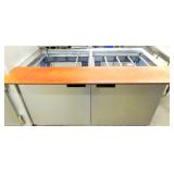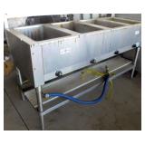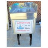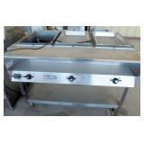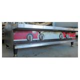 1 TURBO AIR Bottle Cooler Turbo Air bottle cooler. Currently being used and works great. Holds up to 22 cases of 12 oz bottles or 32 cases of 12 oz cans Model TBC-65SD. 115 V Single Phase 1 OLD HICKORY BBQ SMOKER OLD HICKORY smoker, in excellent to almost new condition. Model SSE, natural gas, revolving racks (SEE PICTURE OF SPECS AND NEW PRICE) ***** This item is NOT located at our warehouse in Four Oaks. It is located at the former Sharpshooters Resta... 1 SCOTSMAN Ice machine, dual head, flaked ice (2) SCOTSMAN ice machine heads, flaked ice, (2) remote condensers, (1) 1000 lb stainless bin, ALL IN EXCELLENT LOOKING CONDITION---ALMOST LOOKS NEW 1 CARTER HOFFMAN chip warmer CARTER HOFFMAN top loading chip warmer, Model CW-2. 22 gallon stainless chip warmer. LOOKS ALMOST NEW 1 LANG Cheesemelter, electric LANG "automatic on" 48" cheesemelter, electric, wall mount - LOOKS ALMOST NEW 1 LANG Cheesemelter, electric LANG "automatic on" 48" cheesemelter, electric, wall mount - LOOKS ALMOST NEW 1 ADVANCE TABCO Steam table, MFG 2016 ADVANCE TABCO steam table, 4 well, natural gas, with gas hose, MFG 1/5/2016 1 DEAN Fryer, natural gas DEAN fryer, natural gas, Model SR-42GN 1 ACCU-TEMP Steamer, electric ACCU-TEMP Evolution boiler less steamer, electric 2 DELFIELD Prep Cooler Delfield 60" prep cooler. This unit was tested 4/25/17 amd works perfectly. It is missing the top door covers. Model 4460N-24M. 115 V Single Phase. 3 TRAULSEN Refrigerator, split door Traulsen split door reach in refrigerator on wheels, with right side hinges. This unit was tested 4/18/2017 and works great. Holds up to 18 full sized sheet pans. Model G10000 115 V Single Phase. 4 Bar Sink Custom made, three compartment bar sink. 5 SILVER KING under counter refrigerator, needs work Silver King under counter refrigerator. This is not currently working. Model: SKSR 6 DEAN fryer, nat gas, almost new Dean 75lb, natural gas fryer. Comes with two fry baskets. Model: SR162GN. Serial Number: 1304ME0112. This fryer is in great condition and would cost over $1,400 new. 7 GE chest freezer GE chest freezer. Model: FCM 15DMB WH. Approximate dimensions: 48" X 30" X 35.5" 8 VICTORY Under Counter Refrigerator Victory custom made prep unit with flip top lid. This unit is currently not working and needs a new compressor. 9 SILVERKING Freezer on wheels, missing a wheel Silver King Mobile Freezer. Tested : 3/14/2017 and works fine but there is a missing wheel. Model: SKMF-34DW. Serial Number: SAJL81912B. 115 V Single Phase. 9 SERE WELL Steam table, electric SERVE WELL steam table, 3 well, electric 9 APW flat griddle, nat gas, 2 sections APW Champion flat griddle, natural gas, 2 sections (Unusual) 10 WHIRLPOOL Refrigerator/Freezer, household Whirlpool, household refrigerator/freezer combo. Model: ET1MHKXM Q03 Approximate dimensions: 32.5"W X 31"D X 66"H. Refrigerator capacity is 14.6 Cu. Ft. Freezer capacity is 6.4 Cu. Ft. Total capacity is 21 Cu. Ft. 11 HOBART high temp dishwasher Hobart high temp, corner dishwasher. Model AM-12-A Approximate dimensions: 25"W X 40"D X 58"H 12 Propane Heater Floorstanding liquid propane patio heater on wheels. Approximately 87"H X 33"D X 33"w 12 Propane Heater Floor standing liquid propane patio heater on wheels. Approximately 87"H X 33"D X 33"w 13 VICTORY Under Counter Refrigerator Victory under counter refrigerator that has been customized with a top access door and an outwardly visible thermometer. This unit was tested 3/8/2017 and working great. Model: UR-27-LST Single Phase. 14 VICTORY Under Counter Refrigerator Victory under counter refrigerator that has been customized with a top access door and an outwardly visible thermometer. This unit was tested 3/8/2017 and working great. Model: UR-27-LST Single Phase. 15 Can Rack Aluminum can rack, 70" tall. 16 VICTORY Under Counter Refrigerator Victory under counter refrigerator that has been customized with a top access door and an outwardly visible thermometer. This unit was tested 3/8/2017 and was working fine with the exception of the thermometer. Model: UR-27-LST Single Phase. 17 DELFIELD Under Counter Freezer Delfield under counter freezer 18 Prep Sink, 48" long Prep sink with left side drain board. Approximately 48"W X 30"D with bowl dimensions of approximately 24" X 22" 14"D. The sink is cracked is separating in a couple of spots. 19 Catering Sneeze Guard Portable Sneeze Guard 20 Stainless Table, 30 x 72, cold well, overshelves 72" X 30" stainless steel table on wheels with right side cold well, two 72" X 12" over shelves and ticket holder. 21 Diner Call System, 27 pagers, 2 bases Jtech table ready pagers with two charging bases and 27 pagers. 22 Lettuce Dryer, 5 gallon Chefmaster 5 gallon lettuce spinner with brake. 23 AMANA Commercial Microwave Amana comercial microwave oven. Model: RC22S Serial Number: 0104169806 208/230V 60Hz 24 HAMILTON BEACH Milkshake Mixer, 3 head Hamilton Beach triple head, three speed, commercial malt milk shake mixer. Does not include the cups. Model: 1C950 25 Stainless wall shelf, 23 x 33 Stainless steel, wall mounted appliance shelf. Approximately 23"W X 33"D. 26 SILVER KING Salad Dispenser Tub Silver King salad dispenser tub 27 Ice pack merchandiser Ice cooled merchandiser. Great for sea food. Missing one of the top glass pieces. Approximate dimensions 95"W X 30"D X 56"H 28 Stainless Bowls This lot contains three mixing bowls. One small, one medium and one large. It also includes three soup warmer wells. One small, one medium and one large. 29 Streak Knives Approximately 48 Winco K-85P five inch, jumbo, rounded tip, serrated steak knives. 30 NEW Ladles Four new, stainless steel ladles. 31 VOLLRATH vegetable slicer, missing blade Volrath wall mounted vegetable slicer. Does not include blade. 32 Pasta strainer pots Four pasta cooking baskets. 33 Cake Pans Plastic bin with containing approximately 13 cake pans. 34 Cast Iron Griddle/Grill Camp Chef cast iron, reversible grill and griddle combo. Approximately 16" wide. 35 EAGLE Red Hots t