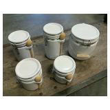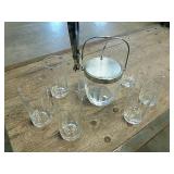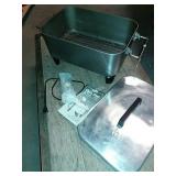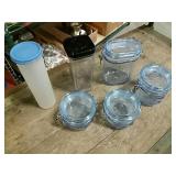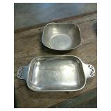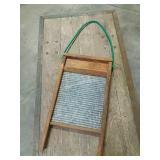 KITCHEN WARE: SILVER PLATE SERVICE & OYSTER SERVERS, BEUCLER GLASSES, WILTON PEWTER BOWL & SERVING DISH, FOSTORIA COLONY GLASSES, CERAMIC CANISTER SET, FISH PLATTERS, FANCY PLACE SETTINGS, ELECTRIC MEAT GRINDER, VINTAGE WALL PAPER, VINTAGE WASHBOARDS