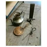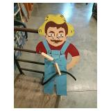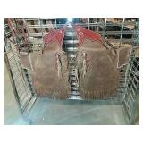 WOOD SCULPTURES, WOOD FARMER SPRINKLER, COWBOY CHINKS, ALLIGATOR BOOTS