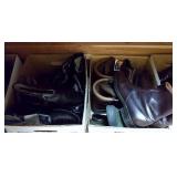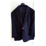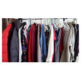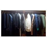 Clothing: Large collection of quality men's clothing including silk ties, suites, leather jackets by Hickey Freeman, Gucci, Jos A Bank, Faberge, Orvis, women's clothing, shoes