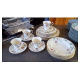 Furniture: Chaise Lounge by Milling Road (includes 24" x 24" pillow), Gunlocke Company set of 4 Cherry Chairs, leather swivel chair by Glenn Furniture, Mid-Century Modern coffee table with mosaic tile top, side chairs, Sealy Queen mattress and box (excellent condition)