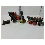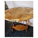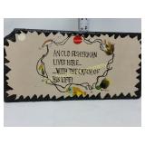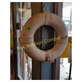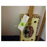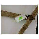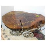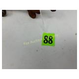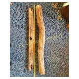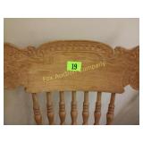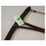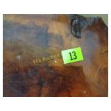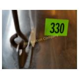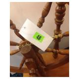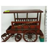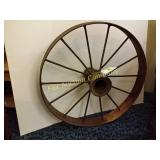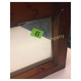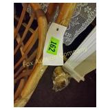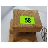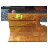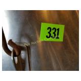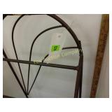 4 shelves Plus end shelves 66 high, 55 long, 27 wide 22 Antique Atwater Kent radio cabinet Good condition - Very Unique Radio with bulbs turns on! 23 Double horse yoke with hooks 49" long, sides 37" Great for decorating! 24 Hand carved wooden horse 2 feet high Missing right ear and has some repairs but an unusual carving 25 Wagon wheel - 32 inches Perfect yard decoration! 26 Wagon wheel - 32 inches Perfect yard decoration! 27 Wood shelf with metal horse and horse shoes 17 inches long 5 deep 28 Decorative horse shoe wall hanging 26 inches long Bring good luck to any room, mounted on a wooden plank 29 Vintage hand saw 29 inches wide, 26 long Wood is hunter green with red and wood patina 30 Baby shoes (3) with knitted sweater and cap Hand knitted baby blanket. Some stains on sweater 31 Antique baby carriage in excellent condition Porcelain doll included 32 Antique carriage with porcelain doll Natural wear, great condition 33 Window bench with 2 front drawers 40 long, 14 wide, 18 high. Bolts needs to be tightened. 34 Unique bench or table 3 feet long, 14 1/2 wide, 18 inches tall 36 Rusty milk can Great for yard art. 37 Laser cut rustic metal fish 3 feet - 9 inches deep 38 Custom made decorative wooden bench 22 1/2 inches long, 15 inches high 39 Cribbage board - custom made Fun game at home or on the road, Like new 19 inches long 40 Hexagon shaped table with glass & brass Very unique with door Excellent condition with normal wear 23 wide, 20 high 41 Antique chair with unique design Small amount of veneer has come off from normal wear 31 1/2 inches high, 23 wide 42 Wooden case with brass corners and latch Solid wood with dividers that are loose and may have been used for dividing hardware. 20 inches long x 9 wide x 3 inches tall 43 Hand carved wooden shelves Duck shelf has 3 hooks (20"), Moose shelf is perfect for any corner (22") 44 Wrought iron table with mosaic patterned top Wood around edge needs a little care but solid table 21 1/2 wide, 18 " deep 25" tall 45 Antique church window