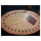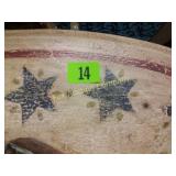 4056 Apache Remington by Frederick Remington Mounted in a wooden window frame! 32x26 inches 13 Original wooden table Resting on antique carriage wheels Top 27 x 18, 14 inches high, Normal use and wear 14 Painted book table Red white and blue stars on the edge and legs. 45x27x17 15 Hobart antique coffee grinder