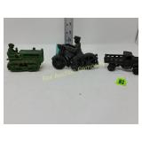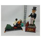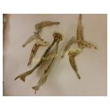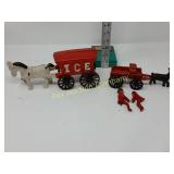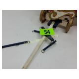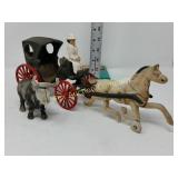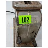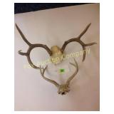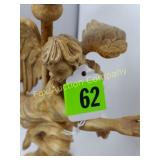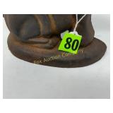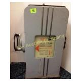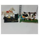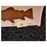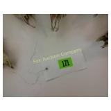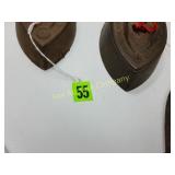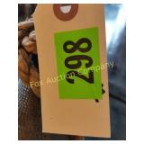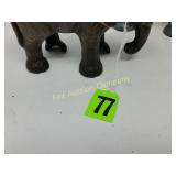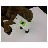 41" long, 11 1/2" tall, Beautiful condition 46 Mannequin torso cloth exterior Heavy plastic under cloth. Perfect for display. Almost 3 feet tall. Little wear and tear 47 Antlers (2) Good for creative ideas! 17" across and 10" on smaller antler 48 Antique spinning wheel with working lamp Very unique 49 Trolls (2) made in Denmark Small troll has 604 on foot - 9" some wear Large troll is 17" 50 Antique baby scale, great shape Normal wear. Top is wicker and intact 53 Jennifer Wright Print -Wild Dogs Jumping at Night 3/5, 13"x 15" 60 Hand painted on slate fishing picture Artist Gail Brown 2001 64 Bisque cutie bride and groom, etc Bisque & Celluloid dolls, Dept 56 Rocking Horse Music Box, and Misc. 65 Antique brass baptismal blessing pot Catholic holy water sprinkler & wood and wire cross 69 Dolls (4) - 1 Disney - Cinderella is marked Disney (her dress needs a good cleaning ) 77 Cast iron elephant banks (4) See added Image. 99 Stacyville CO-OP (2), Felco Seeds Tape