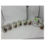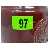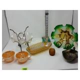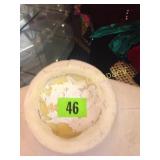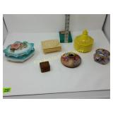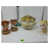 Beautiful Some of the dabbers are broken 231 232 Trinket /Jewelry Boxes (6) The music box does not work and has a broken wing on the butterfly. 236 Amber Pitcher & Goblets (6) Small chips on the pitcher rim. 239 Musical Decorations & Busts of Children The music box does not work. 254 Meakin Ironstone Chamber Pot Chip on base rim. 255 Paper Mache Clowns