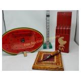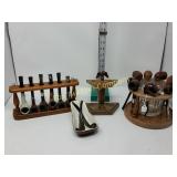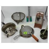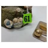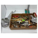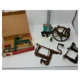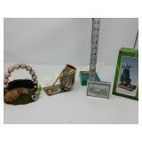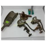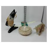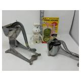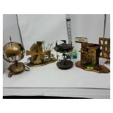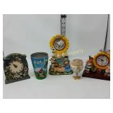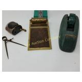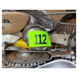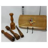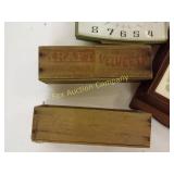 Options are endless For that creative person! 172 173 ALABASTER solid and beautiful heavy bookends FATHER'S DAY IS AROUND THE CORNER! Perfect gift for an office or to keep your mail together, 8" high 174 Kraft velveeta wooden box 9" w/Wooden Box & Clocks Retro green clock works; wooden Sparta clock not working but hands can be replaced 175 Vintage Nut Cracker & 14" Cast Iron Griddle Wooden Nut Cracker 9 1/2" tall Cast iron griddle for campfire lovers! 176 Wooden 3 part shelf hinged