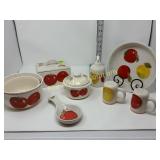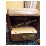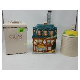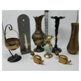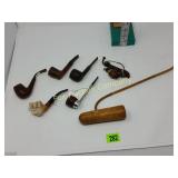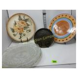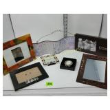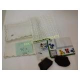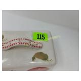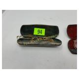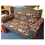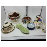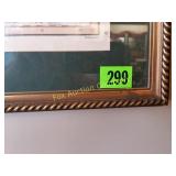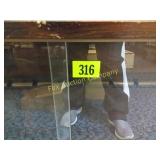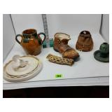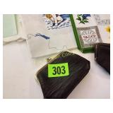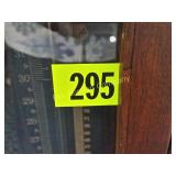 The duck is Fossil Art The small figures are chalk. The others are not marked. 263 Frankoma Cruet & Casserole The Cruet has a repaired crack and a chip. 277 292 295 Unusual Chaney Barometer in a Wood Cabinet 39"x9"x5" Mercury has been drained and is in a marked container inside the cabinet 303 Table runner, Doily, Coin Purses & Handkerchiefs table runner is hand embroidered 40"X44" 304 Love seat