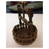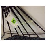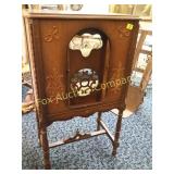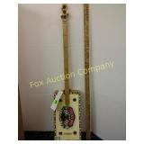 display only Does not work but could be fixed Front glass broken 27x19 16 Wrought iron plant stand or candle holder 34x28, Heavy, sturdy display stand 17 Wrought iron hand towel or small quilt stand 37x16x10 deep. 18 Dulcimer made out of a wooden cigar box!