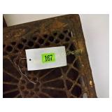 88" (over 7 feet) Made from Pillsbury's BEST Flour bags! One blue cloth panel has a small tear Adorable!! 167 Copper ornate grates (2) decor One 15x14; the other 14x12 169 Camel Stool