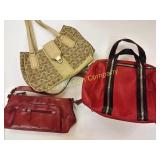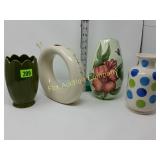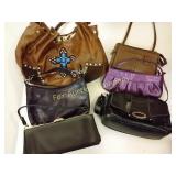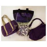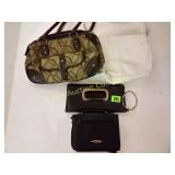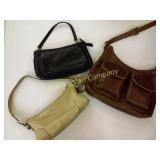 California Blend Walnut Burlap bags. Some wear but in great shape! 181 B&K lumber tool Apron -Drift Wood-Glass Cylinder decorative drift wood and glass cylinder 1" tall 184 Lot of designer purses Nine & Co., liz claiborne, leather clemente 203 Jug with Blue Flowers and Crock Robinson Ransom Tom Roseville, OH Crock Good condition 211 Water Pitchers ( 3 ) The clear glass pitchers have chips on the rim. 213 216 222 Black Amethyst Vases (4) & Cream and Sugar