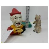 (2) The neck on the small clown is loose. 256 Clown Music Boxes The large one is marked Claude & Claude. They both work. 258 Lot of Figurines ( 5 )