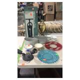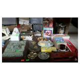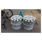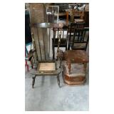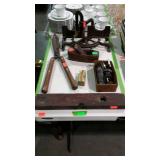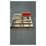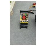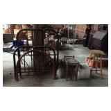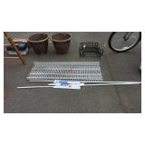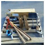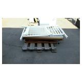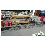 May 8 2017 3 Garden push plow, all metal handle construction with cultivator, plow, lay off point, and 2 prong cultivator 5 Craftsman professional 6 speed rear drive push mower, 21" cut with 179cc Kawasaki engine with mulching and discharge shroud, a bagger comes along 7 Craftsman garden tiller, 24" digging width, 5.5hp Briggs & Station engine, plus a new set of lawn aerator kit attachment tines come along 8 Southern States push mower, 22" cut with 6.5hp Briggs & Station engine 11 Misc group lit, 4 lightweight steel posts 5 gallon poly kerosene can, 2 partial bags of mortar mix 12 8 foot all wooden step ladder by Werner, newer nice condition ladder 14 Set of 4 tires and wheels, 15" tires on older set of Progressive Custom Wheels needs cleaned 16 Garden Plus Drop Spreader poly hopper type 16" spread width 17 Troy-Bolt pressure washer, powered by 5hp Honda 2600psi, has hose nozzle, and extra nozzle tips, not tested by us but nice clean later model machine here though guys 18 Outdoor patio table set, High Bistro style table glass top with umbrella hole, and four high stools with mesh fabric seating paint shows fading in color, and shows normal outdoor use wear, but nice summer time deck table set here 19 Scotts self propelled mower, 6.hp, with 21" cut, rear bagger Briggs & Station engine has the Turf-Vac cutting system 20 Wheel barrow used for concrete work but kept cleaner than most still ready to work for you 21 Two trash cans, blue both Rubbermaid one home owners with lid, other without lid 22 23 Werner 6 foot fiberglass step ladder, used but still in good ready to use shape here folks 24 Patio chair, swivel rocker type, aluminum frame with fabric mesh seating in okay usable condition folks 29 Two old metal gas cans, one military style is rust and has holes other 5 gallon shows age use but appears to be usable 31 Old water pitcher pump mounted on well pipe but needs some repairs 35 Two outdoor patio chairs with matching ottomans, aluminum frames with mesh fabric seating, used but both ready for summer use 37 Set of 4 outdoor chairs, aluminum frames poly webbing but no cushions 38 Misc tool lot, 2 trash cans with misc lawn and garden type tools 39 Patio table glass top with umbrella hole aluminum frame needs cleaned or painted 60 x 38" 40 Yard Machines self propelled mower, 21" cut with rear bagger 190cc engine with electric start option but may need to use pull cord to start 41 Craftsman self propelled mower, 22" cut 190cc engine no catch bag, 42 Toro recycler pushmower, 6.5hp, 21" cut with rear bagger self propelled type 51 53 Two nice blue folding camping style chairs with the storage bags 57 Two folding camping style chairs, blue and green both with the storage bags both from Dick's sporting goods 58 59 Folding light duty small animal wire panel pet cage having sixteen 10" wide panels 60 Tool lot, 2 tile cutters, shop light and extension cord 63 Skid of misc, lamp shades, flower pot dollies, electric hedge clippers, premier kit, 2 boxes tile grout, small bag of sea shells 64 Misc group lot, plastic hardware bins, 2 containers of chain lube oil, bucket with some cat litter, 2 bags of wood pellet fuel, bucket with plumbing and other hardware 65 Misc group lot, new drain snake, 2 broom heads, docking station, 3 old wood ball vats, etc 66 Group of misc floor tile pieces, and four 18" slate stepping stones 70 Big group of long handled tools, shovels, rake, pothole diggers, picks, edger, spade fork, etc a bunch of tools guys 72 Two early metal flower trellis fan shaped at top stake in the ground type 24w x 54" high nice older pair of trellis here folks 73 Early solid wood entrance door 5 horizontal panels, with door knob, 32" wide 74 Early solid wood entrance door 5 horizontal panels, 32" wide 75 Early solid wood entrance door over and under panel type 32" wide 76 Group of long handle tools, tree limb cutter, shovels, prunners, push broom, old fishing rod damage on the reel though, Maddox, folding cart, etc 78 Fence sections, black aluminum iron type railing fence there are ten 34" wide sections 29" high with posts and bag of ground stakes new fence made in style of old fence 85 Red folding camping chair from Dickson sporting goods with storage bag 86 Look here nice older wrought iron 3 piece patio lawn settee set, 2 armed chairs and one sofa black painted no cushions but frames are in nice condition 87 Redwood chase lounge patio or pool side lounge, back rest folds down flat if desired arms needs washed off a little otherwise solid condition 89 91 Wrought iron glass top patio coffee table needs washed but in nice solid shape 93 Two new window panes by Monarch wood frames set of swing open type windows 20 x 30" 96 Group of 4 wrought iron lawn pieces, trellis, garden tower, plant hanger, and citronella holder 4 pieces as one lot 98 Two small kids folding camping chairs one is spiderman and the other is lightning McQueen both do have bags 101 Three piece lot two green plastic lawn chairs and one white plastic lawn chair 102 Aluminu framed patio table missing parts to hold the legs on your buying as is 103 Three piece lot metal ironing board, metal folding chair, and handicapped walker 107 Wooden work shop table nice little work shop table here guys measures 66 inches long 27 inches wide and 35 inches tall seller code MD 108 110 111 Four metal framed wicker patio chairs, chairs are in nice shape but cushions are not 112 117 Metal four drawer filing cabinet measure's 26 inches long 15 inches wide and 52 inches tall 120 Small wooden patio table 20 inches long by 20 inches wide by 16 inches tall 132 140 Four piece lot with a axe, pick axe, limb saw, and small shepherds hook 141 142 Early wooden garden plow only one handle 148 151 Plastic out door storage cabinet measures 24 inches long 16 inches wide and 66 inches tall 154 Craftsman brand electric leaf blower owner says does work with box and all the parts 156 Magna brand Oasis brand 15 speed mountain bike, nice mouthing bike here guys 157 Diamon