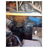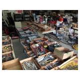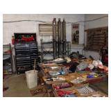 Partial Listing: Frame Machine and attachments, 3 Large Air Compressors, Mac Tool Boxes,Mac Tools, Snap On Tools, Many Specialty Tools, Fans, Battery Chargers, Ladders, Ext. Cords, All types of wrenches, Air Tools, Ratchets, Pipe Wrenches, Screwdrivers, Shop Vacs, Roll Around Carts and so much more... So many items to list!