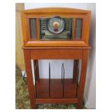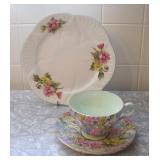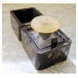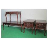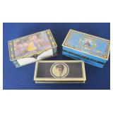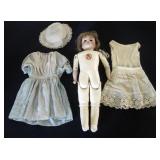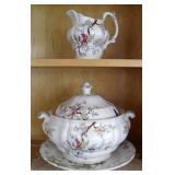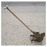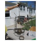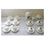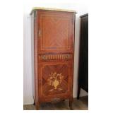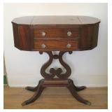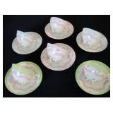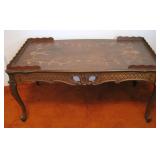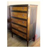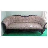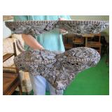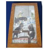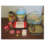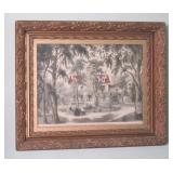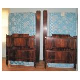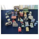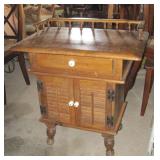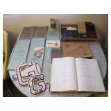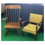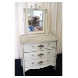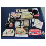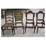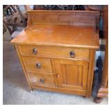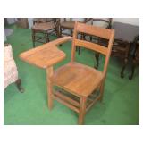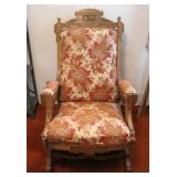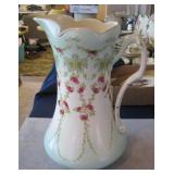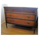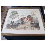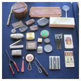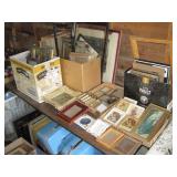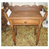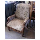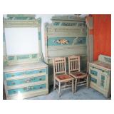 1 Mid Century Retro Formica & Chrome Table Circa 1950's dropleaf retro dinette table, grey "cracked ice" finish, has a couple nicks (see photos) 2 Set 4 Mid Century Retro Swivel Chairs Four dinette chairs by Brody, yellow vinyl upholstery, chrome bases. One chair has a nick in the upholstery on the back (see photo) 3 Two Vintage Bavarian Plates 10" plate and 12" cake plate, each with design signed Fragonard 4 Antique Cast Iron Beetle Boot Jack Guaranteed to be an original, measuring 10 1/2" long 5 Antique Washstand Dark stained ash wash stand with towel bars on either side. 30" x 15" x 31" tall. 6 Watercolor Painting of Grouse Unsigned primitive painting of a grouse family, 7 3/4" x 8 3/4", in a 15 1/2" x 17 1/2" frame 7 Vintage Silver Fox Stole See Added Info Silver fox stole in good condition from Fuhrman's, Beverly Hills. This is a vintage (probably mid 20th century) fur which was stored in a closet for many years. It has the scent of perfume. 8 Collection of Sunbonnet Babies Items Antique Sunbonnet Babies postcards, prints, and book. Some postcards are in their original 1905 Ullman frames. 9 Vintage 22" Flapper Necklace Blue opaque and clear faceted beads. Excellent condition, beautiful color. 10 High Quality Vintage Maddox Maple Desk Colonial style desk. Matches maple chest (next lot #11) 11 High Quality Vintage Maddox 5 Drawer Chest Colonial style chest, beautiful flame maple drawer fronts. 12 Antique Victorian Ruffled Bride's Basket Late 19th century cased glass bride's basket with delicate enamel flower and gilt deoration 13 Antique German Blue&White Stoneware Motto Pitcher 9" tall salt glaze pitcher with fox hunt design. It reads around the top: "My friend is he that loves me well, But who he is I cannot tell" Excellent condition, one very small flake off the underside of the bottom edge. Signed B&A Ges. Gesch Germany... 14 Well Loved Child's Red Cowboy Boots Sole is 6 1/2" long. Condition is rough. 15 Antique Primitive Vegetable Slicer Late 19th century wooden vegetable slicer 16 Antique Rayo Kerosene Lamp 21" chrome plated Rayo lamp with original burner and instruction tag. Has a shallow dent in the font (see photo) 17 Eastlake Victorian Gentleman's Platform Rocker 19th century walnut platform rocker. Needs to be reupholstered. 40" tall and 26" wide. Seat is 21" wide-generous for a chair from this period. 18 Oneida "Brookline" Silverplated Coffee Set Vintage silverplated coffee set includes 9" coffee pot, covered sugar, and creamer. Comes with a silverplated 18" x 13" handled tray. In good condition but tray needs to be polished. 19 Vintage Print "The Golden Glade" Frank Hazell Early 20th century print by Campbell Art Co., 16" x 19 1/2" in the original 17 1/2" x 21" period frame 20 Crosley CR83 Radio, CD & Record Player Modern Crosley "Centurion" Radio, CD & Record Player, works great, with stand. Player is 16" x 17" x 9". Stand is 23 1/2" tall. 21 39 Pieces of Vintage Hand Crochet Work Assorted colors, and three matching ecru color 16" doilies with star center and seven different matching 11" doilies, all in good condition. 22 Mid Century Retro Chrome Osterizer Blender In great working condition! 23 Child's Vintage Maple Rolltop Desk & Swivel Chair Desk is 30" x 16" x 36" tall. Swivel chair matches it. 24 Collection of Antique & Vintage Sewing Items Darning eggs, needle cases, primitive rug punch, 1907 advertising celluloid folding ruler, wooden spools of thread, needle cases, Prudential advertising tin needle threader, etc. 25 1950s Zenith Stroboscope SuperPhonic Record Player Player plays and sounds great. Couldn't get the automatic record changer to work. Not sure if it isn't working or if I just don't know how to work it! 26 Hawaiian Leolani Ukulele Teashirt Photograph Ukulele in like new condition, and lady's size small Hawaii teashirt (never worn). Also a large 17" x 21" vintage 1940s/50s photograph of Diamond Head Hawaii with men in outrigger (perhaps US soldiers on R&R). In a heavy 31" x 35" frame. 27 Side Table Modern side table finished in a mahogany color stain, 31" tall 28 Vintage Noritake Teaset Includes teapot, creamer, sugar, six plates, and two cups and saucers. The spout of the teapot is chipped (see photo). Would be sweet for tea with the grandchild! 29 Two Primitive Cat Head and Buttocks Splint Baskets Two antique baskets. One is called a "cat head" because the bottom forms little points on the four corners that look like cat's ears. The other is called a "buttocks" basket for obvious reasons. 30 Vintage Metal Steamer Wardrobe Trunk Even has an ironing board mounted inside! In good condition, missing one wheel. 31 19th Century Chromolithograph of Kittens Circa 1890 print of kittens in the cream by Van Vredenburgh, 16" x 8 1/2" in an antique 19" x 11 1/2" oak frame. Glass is cracked but has not affected the print. 32 Mid Century Inlaid Coffee Table High quality table in very good condition. 17" x 33" x 15 1/2" tall. 33 Antique Cloth Dolls- Santa, Cat, Tom Thumb Includes an rare uncut 9" Tom Thumb doll pattern by Selchow & Righter, a 9" Tom Thumb doll that has been cut, sewn, and stuffed, a 15" Santa Claus doll, and a torn 6" cat doll. 34 16 Antique Stickpins GF Sterling Advertising All are antique or vintage pins. The pin with the leaves is marked Sterling. The other filigree pieces are unmarked. The horseshoe is gold filled. Includes advertising stickpin for the Anderson Brown Shoe Company, some with stones, and one in the sha... 35 Vintage Mahogany Lyre Base Sewing Stand The drawers have faceted glass knobs. The stand is 24" x 11" x 26" tall. 36 6 Cherry Blossom Pink Depression Tumblers & Plate Six 4 3/8" tall Cherry Blossom footed tumblers and an 8" Dogwood plate. All guaranteed original. In good condition. 37 Antique Hand Painted Teaset Unmarked, but probably Bavarian. One cup has a fine hairline at the rim and another has a hairline at the base of the handle (see photos) 38 1949 Hand Colored Photo of Desert Dust Stallion 11" x 18" hand colored photograp