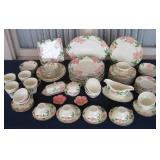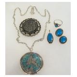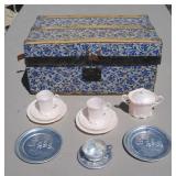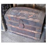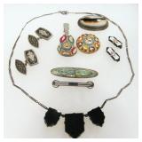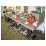 Lots of primitives, several antique trunks, old childrens items, lots of antique & retro furnishings, pottery, baskets, sterling silver, Meanea saddlebags & other old tack, Indian beadwork, paintings & prints, rare Wallace "Little Buckaroo" childs dishes, Durand art glass, china sets (Lenox, Noritake, & Franciscan), Eisenberg & other costume jewelry, linens, antique dolls and dollhouse furniture, and much more!