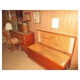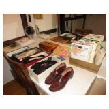 Drexel Dining room set & server Oak icebox Noritake Besse Dish set Vintage lamps Oil paintings Candelabra, brass and sterling Hummels Vintage 60's velvet furniture plus blue and green retro couch Victorian clothing Fostoria Wheat Crystal stemware including Punchbowl Heisey Orchid Mission ladies secretary Birds eye maple high boy Cedar chests Vintage linens Vintage games Antique cherry secretary Ferragomo shoes size 9 narrow Goose neck rockers Antique Bedroom set with marble top dressers Majolica Antique tea cups Delft Depression Glass Vintage Braun Stereo cabinet Records Rattan furniture Misc. Antique dressers Vintage Habachi Iron bed frame Old typewriters Books Painted red desk and chair Brass coffee tables Tommy Thompson signed and numbered print Vaseline Glass 2000 Dodge Intrepid