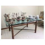 Rectangular glass top table Antique finish chairs 6 Bird lamp Leather Loveseat Bookcases Books Chair lifts Sectional with ottoman Schwinn exercise bike Treadmill Health rider Antique finished desk with shelf Footstools Engraved wood coffee table Stained glass lamps Barrel table Clocks Décor Round glass table with 4 wicker chairs Small kitchen appliances Cusinart food processor Cusinart rotisserie oven Pressure cooker Art-Munro Neville Figurines Floral couch Quilt Wood carvings End tables Bed frame Large Hutch Full length mirror Vanity with chair Over door jewelry case Books |