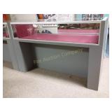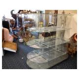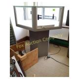 Frayed on the edges and faded some stains 492 495 Glass Display Case with rolling stand