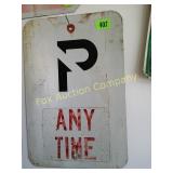 Metal 34" X 25" Needs a good cleaning and 1 corner is bent 407 No Parking Any Time Sign Shows fading and crazing 12" X 18" 409 Coca Cola Lamp w/extra Shade