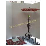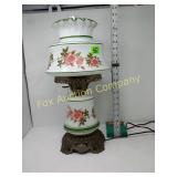 In great condition . old/patina 855 Stain glass lamp BEAUTIFUL FLORAL DESIGN 19" across |